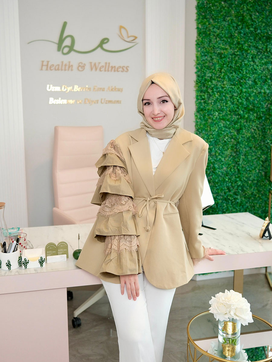 Ben Uzman Diyetisyen Berrin Esra Akkuş. Beslenme ve Diyetetik alanındaki akademik yolculuğumda, bilimsel yaklaşımlar ve bireysel deneyimlerden beslenerek sağlıklı yaşam konusunda binlerce danışana rehberlik etme fırsatı buldum. Misyonum, sağlıklı ve bilinçli bir yaşam tarzını benimseyen bireyler yetiştirmek ve bu süreçte onlara sağlıklı beslenme alışkanlıklarını kazandırarak hayatlarına değer katmaktır.
